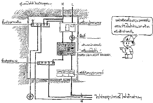 อุปกรณ์ต่อสายดิน (Ground Wire) จะติดไว้เป็นอิสระจากระบบไฟฟ้าทั่ว ไป เพียงแต่สายดินนี้ จะวิ่งคู่ไปกับสายไฟทั่วไป เพื่อคอยรับไฟฟ้าที่รั่วออกมา แล้ว นำไฟลงสู่ดิน ส่วนเจ้าเซฟตี้เซนท์ หรือเซฟทีคัท (Earth Leak Circuit Breaker) นั้นจะติดอยู่ในสายไฟหลักทั่วไป โดยติดเอาไว้หลังสะพานไฟครับ แต่ไม่จำเป็นอย่า ไปติดเองเลยครับ ให้ช่างไฟท่านมาช่วยติดดีกว่านะครับ