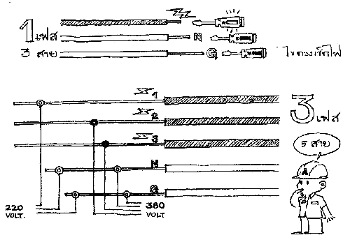 ๑ เฟส กับ ๓ เฟส เท่านั้น ไม่มีไฟ ๒ เฟส หรือ ๔ เฟส นะครับ
