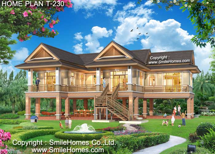 เป็นบ้านยกพื้นสูง มีใต้ถุนชั้นล่าง เหมาะสำหรับนำไปปลูกสร้างในที่ดินขนาด 105 ตารางวาขึ้นไป