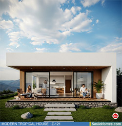 แบบบ้าน MODERN TROPICAL HOUSE เป็นแนวคิดการออกแบบบ้าน จากสไตล์ รูปแบบภายนอกของบ้าน ที่แสดงถึงเอกลักษณ์ของตัวบ้าน การเลือกใช้วัสดุ บรรยากาศโดยรวมของบ้านที่ท่านชอบ มาออกแบบรายละเอียดตามประโยชน์ใช้สอยที่ท่านต้องการ เช่น ต้องการบ้านกี่ห้องนอน มีห้องรับแขก ห้องอาหาร ห้องครัว ห้องน้ำ หรือห้องอิ่นๆ ที่ท่านต้องการ ที่จอดรถกี่คัน และเขียนเป็นแบบก่อสร้าง หรือแบบพิมพ์เขียวครบชุด ทั้งแบบสถาปัตยกรรม แบบวิศวกรรมโครงสร้าง แบบระบบไฟฟ้า และแบบระบบสุขาภิบาล พร้อมใบเซ็นรับรองของสถาปนิก, วิศวกร และรายการคำนวณให้ท่านนำไปใช้ยื่นขออนุญาติก่อสร้างจากทางราชการ , ให้ผูู้รับเหมานำไปสร้างจริง หรือนำแบบไปยื่นขอกู้แบงค์ได้ทันที