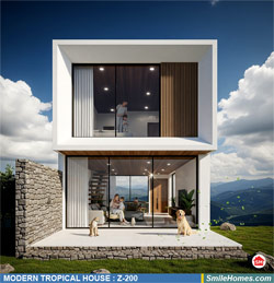 แบบบ้าน MODERN TROPICAL HOUSE เป็นแนวคิดการออกแบบบ้าน จากสไตล์ รูปแบบภายนอกของบ้าน ที่แสดงถึงเอกลักษณ์ของตัวบ้าน การเลือกใช้วัสดุ บรรยากาศโดยรวมของบ้านที่ท่านชอบ มาออกแบบรายละเอียดตามประโยชน์ใช้สอยที่ท่านต้องการ เช่น ต้องการบ้านกี่ห้องนอน มีห้องรับแขก ห้องอาหาร ห้องครัว ห้องน้ำ หรือห้องอิ่นๆ ที่ท่านต้องการ ที่จอดรถกี่คัน และเขียนเป็นแบบก่อสร้าง หรือแบบพิมพ์เขียวครบชุด ทั้งแบบสถาปัตยกรรม แบบวิศวกรรมโครงสร้าง แบบระบบไฟฟ้า และแบบระบบสุขาภิบาล พร้อมใบเซ็นรับรองของสถาปนิก, วิศวกร และรายการคำนวณให้ท่านนำไปใช้ยื่นขออนุญาติก่อสร้างจากทางราชการ , ให้ผูู้รับเหมานำไปสร้างจริง หรือนำแบบไปยื่นขอกู้แบงค์ได้ทันที