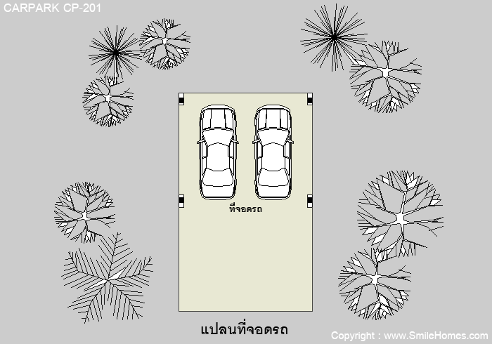 อาคารที่จอดรถ CP-201 จำนวน 2 คัน สไตล์ Modern : รูปทรงภายนอกดูทันสมัย โดดเด่น สวยงาม สร้างแยกออกมาจากตัวบ้าน ** สามารถจัดวางตำแหน่งที่จอดรถ ให้เหมาะสมตามรูปทรงที่ดินของท่านได้ **